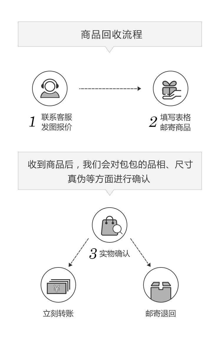 以下为奢易拍商品回收流程参考: 为了避免这位消费者遇到的问题,我们在商品初步图片报价时,并不做任何真伪参考。收到实物后,我们会对商品的品相、尺寸、真伪等方面进行确认,如果发现是假货,会退回商品并不收取任何费用。